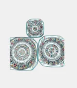 In the skilled hands of artisans, these Moroccan plates come to life, where geometric and floral motifs blend in perfect harmony to create a stunning visual effect. The square-shaped plates, with their wavy edges, add a touch of elegance and uniqueness, while their layered arrangement forms a captivating 3D masterpiece.